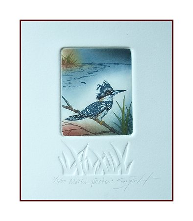 13. Martin pêcheur 7 1/4" x 7 3/4" -- (18 x 20 cm.) $40