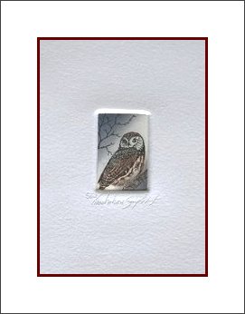 46. Hibou 7 3/4" x 7 1/4" -- (18 x 20 cm.) $30
